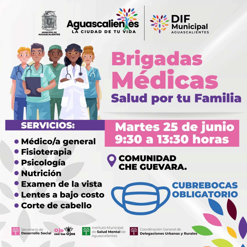 El DIF Municipal de Aguascalientes, invita a la ciudadanía a las Brigadas Médicas “Salud por tu Familia”, que se llevan a cabo en diferentes colonias, fraccionamientos y comunidades.