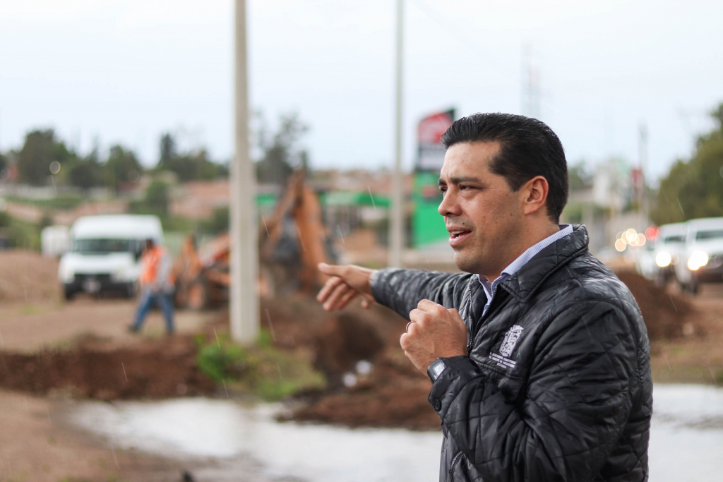 Finalmente, Leo Montañez visitó Av. Aguascalientes oriente en su cruce con Av. Pensadores Mexicanos, donde se dará inicio con los trabajos de construcción de tres caimanes que permitirán captar el agua pluvial y evitar así, inundaciones en esta avenida con alto flujo vehicular.