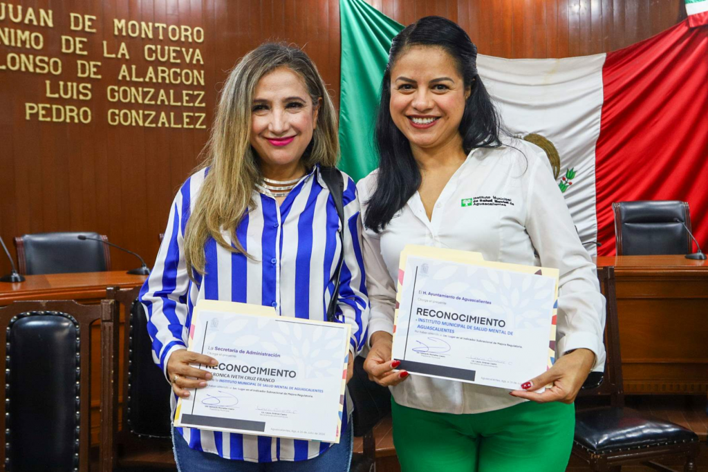 Asimismo, en esta ceremonia efectuada en el Salón de Cabildo, se llevó a cabo la entrega de reconocimientos en Mejora Regulatoria a titulares y enlaces de las diferentes áreas del Municipio de Aguascalientes.