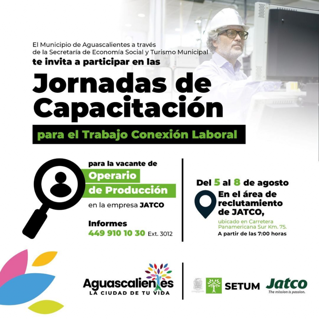 El Municipio de Aguascalientes, a través de la Secretaría de Economía Social y Turismo Municipal (SETUM), convoca a participar en la Segunda Jornada de Capacitación para el Trabajo «Conexión Laboral». Este evento tiene como objetivo principal capacitar a los participantes para que, al concluir su formación, puedan asegurar una contratación inmediata por parte de las empresas participantes.