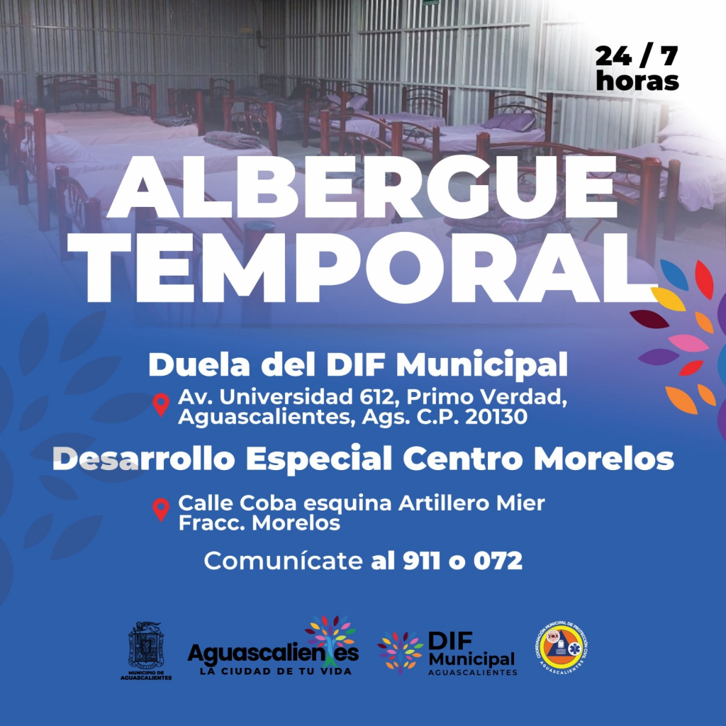 Debido a las torrenciales lluvias que se registraron el día de hoy, el Municipio de Aguascalientes, a través del DIF Municipal habilitó las instalaciones de la duela del Centro Comunitario (CEDECO) Universidad como albergue temporal para las personas que tengan alguna eventualidad producida por las precipitaciones.