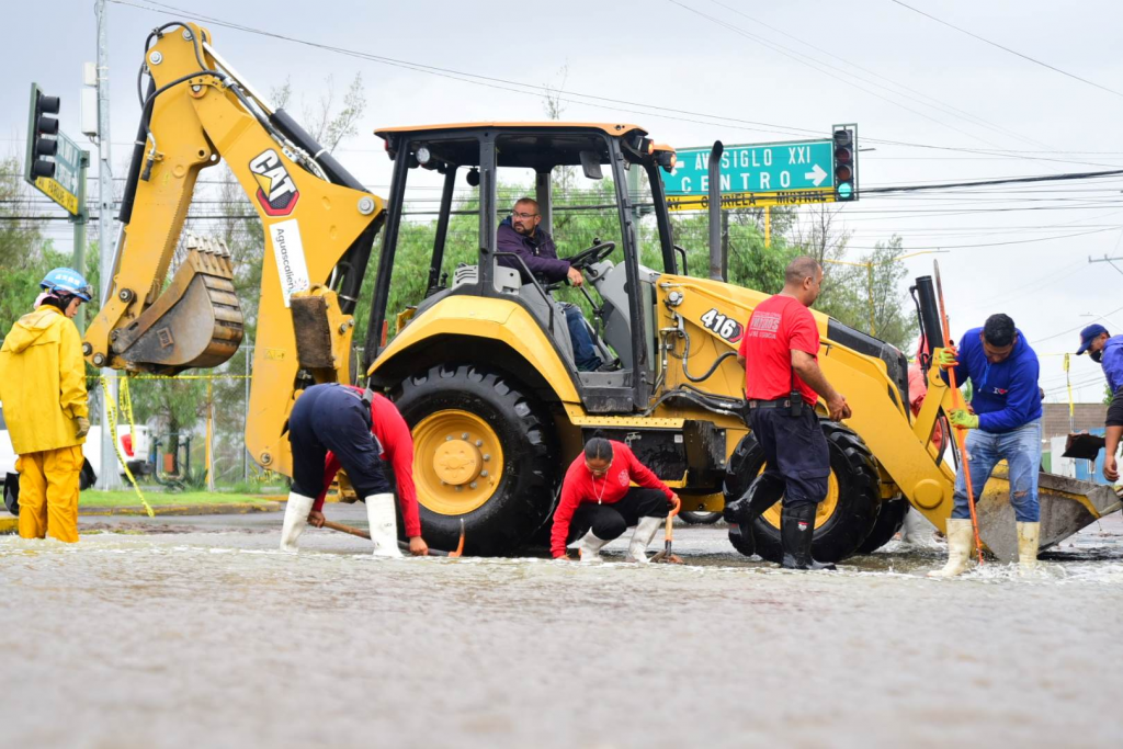 Tere Jiménez y Leo Montañez giraron instrucciones precisas a los titulares de las áreas involucradas, tanto del Gobierno del Estado, como del Ayuntamiento capitalino, para que atiendan y resuelvan las necesidades de la ciudadanía, así como para restablecer lo más pronto posible la infraestructura vial e hidráulica que se vio afectada por las lluvias torrenciales.