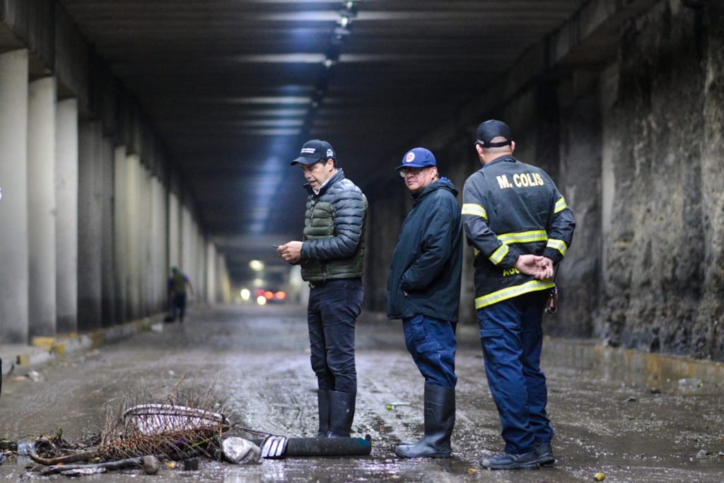 Durante la madrugada, el presidente municipal supervisó las tareas de limpieza y desazolve en el paso a desnivel de Expoplaza, sobre la Av. Adolfo López Mateos que resultó gravemente inundada, durante la intensa lluvia.