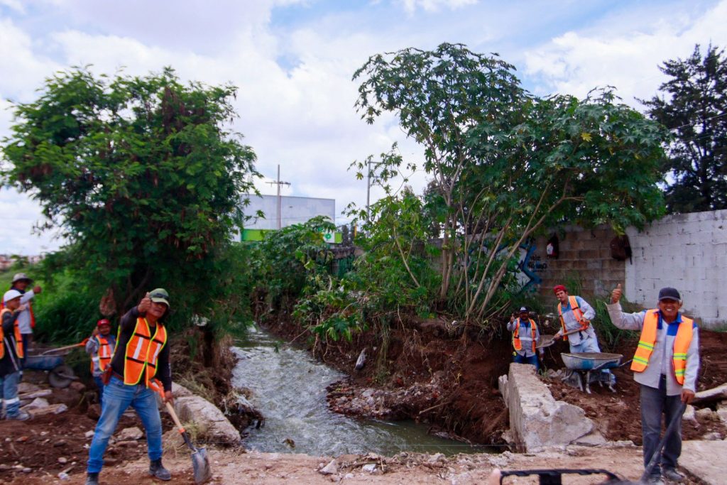 A través de la Secretaría de Servicios Públicos se trabaja en la limpieza de las calles, camellones y laterales que resultaron con acumulación de basura y desechos de arrastres, como en el canal de la colonia Estrella, una de las zonas mayormente afectadas.