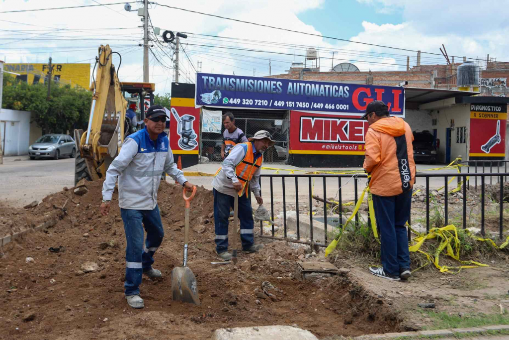 A su vez, personal del Modelo Integral de Aguas de Aguascalientes (MIAA) desazolvó el alcantarillado en la calle Arroyo, en el fraccionamiento Lomas del Chapulín, en donde diversos tapones de basura y otros residuos generó un brote de aguas residuales hacia la superficie.