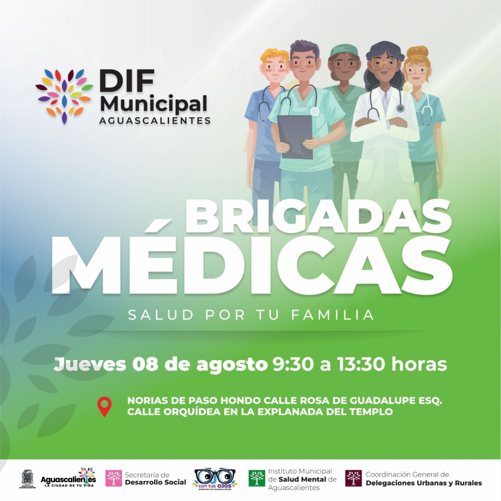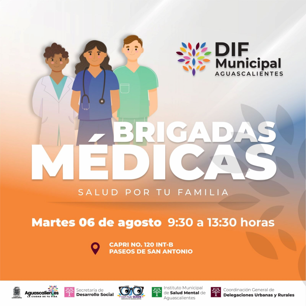 En apoyo a la salud de la población en situación vulnerable, el DIF Municipal de Aguascalientes realizará dos brigadas médicas “Salud por tu Familia” en Paseos de San Antonio y en Norias de Paso Hondo, así lo informó, Zayra Rosales Tirado, directora general de esta institución.