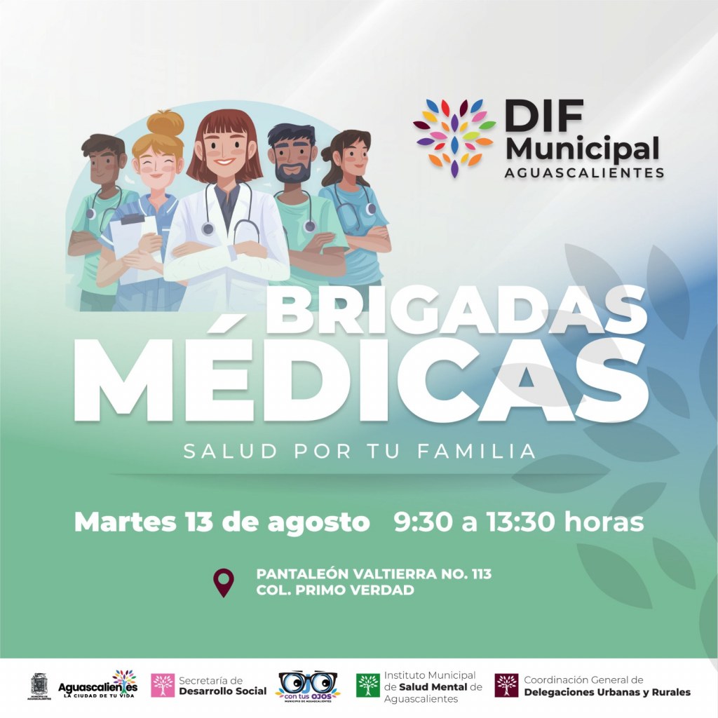 Señaló que la brigada médica se realizará en la calle Pantaleón Valtierra No. 113, en un horario de 09:30 a 13:30 horas.