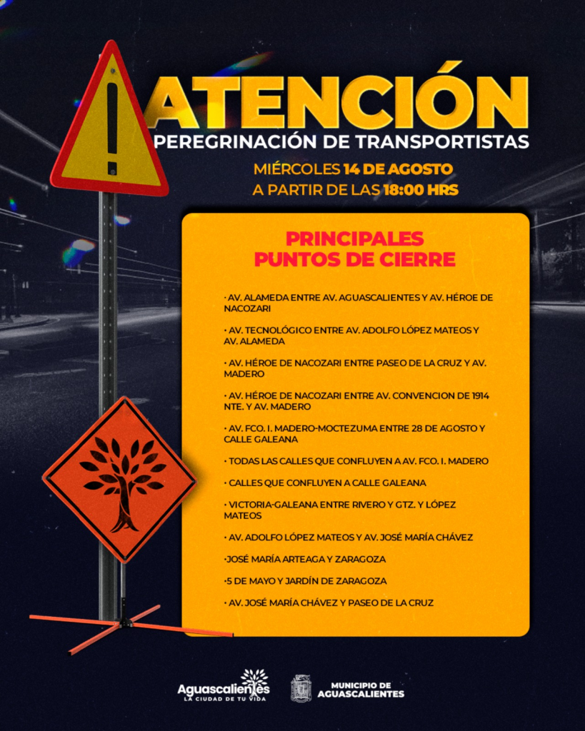 La Secretaría de Seguridad Pública Municipal de Aguascalientes (SSPM), alista el operativo vial para la peregrinación de transportistas, que tendrá lugar el próximo 14 de agosto de 2024, en punto de las 18:00 horas. Así lo informó Arturo Martínez Morales, titular de la Dirección de Movilidad.