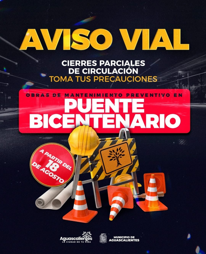 En este sentido se hace un llamado a la ciudadanía a tomar precauciones debido a que a partir de las 21:30 horas el puente se estará cerrando de modo parcial en el sentido de circulación de oriente a poniente y se reabrirá aproximadamente a las 6:00 horas.