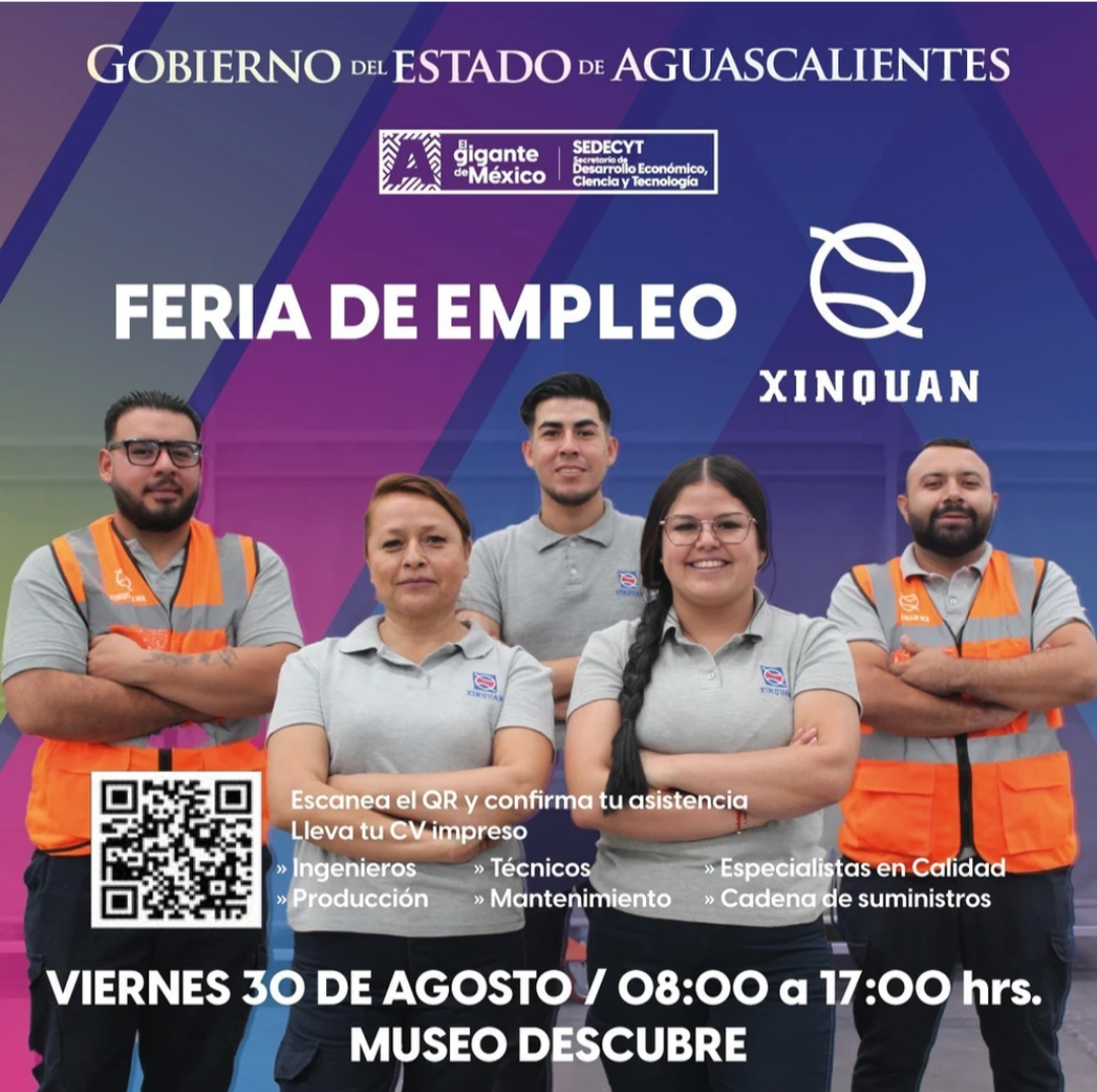 El Gobierno del Estado invita a participar en la Feria de Empleo donde la empresa china Xinquan ofertará más de 250 oportunidades laborales este próximo viernes 30 de agosto, en…