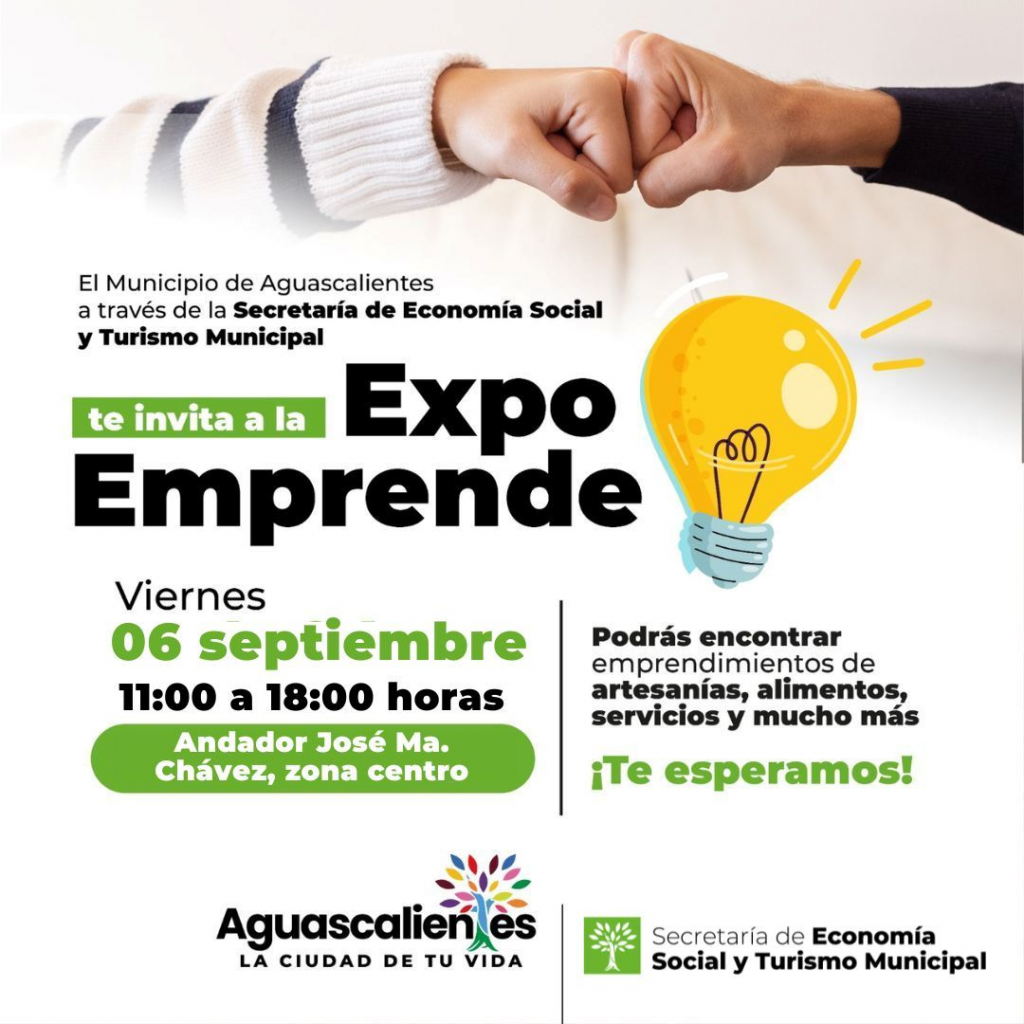 Municipio de Aguascalientes a través de la Secretaría de Economía Social y Turismo Municipal (Setum), invita a la comunidad a la tercera edición de la Expo Emprende, un evento que busca destacar la innovación y el esfuerzo de emprendedores locales. Esta se llevará a cabo el viernes 06 de septiembre de 11:00 a 18:00 horas en el andador José María Chávez, en el centro de Aguascalientes.