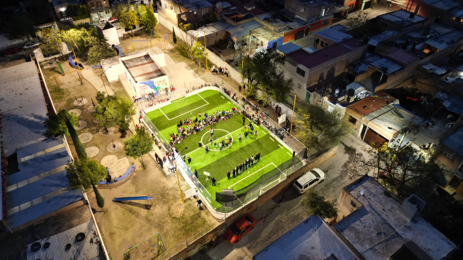 Infraestructura deportiva para partidos de fútbol rápido sobre pasto sintético se llevarán a cabo en el parque Pocitos de dicha comunidad del municipio de Aguascalientes en beneficio de los vecinos…