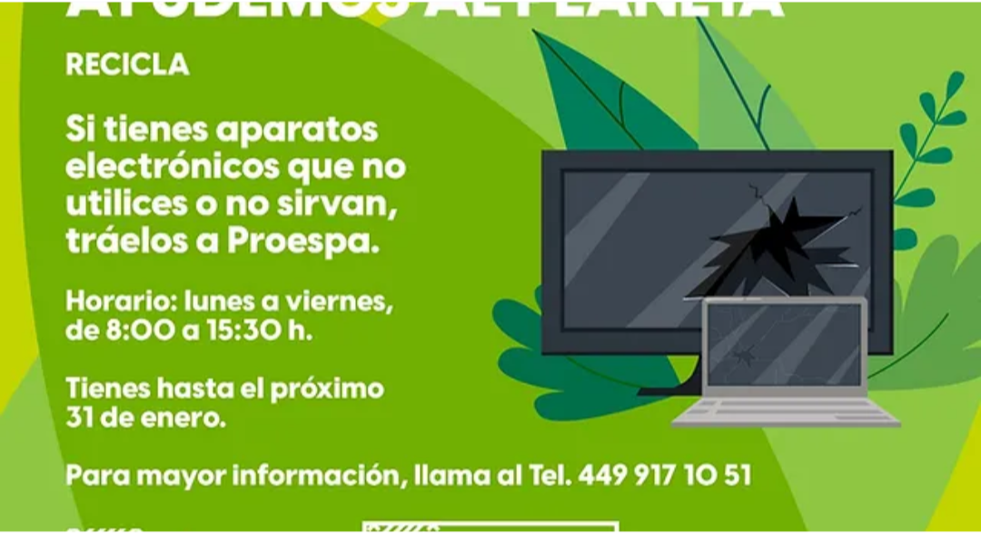 El Gobierno del Estado, a través de la Procuraduría Estatal de Protección al Ambiente (Proespa), invita a la población a participar en la campaña de recolección de aparatos electrónicos que…