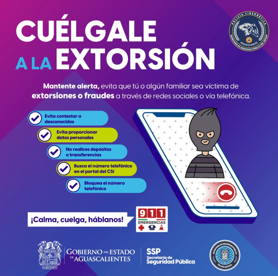 La Secretaría de Seguridad Pública del Estado (SSPE) te invita a seguir algunos consejos para prevenir extorsiones o fraudes telefónicos. Para evitar ser víctima de un delito, mantén tu información…