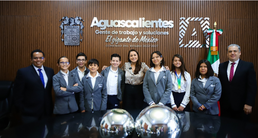 La gobernadora de Aguascalientes, Tere Jiménez, felicitó a los 16 estudiantes de secundaria del Colegio Cedros y de la preparatoria del Centros de Estudios de Bachillerato 5/1 Lic. Jesús Reyes…