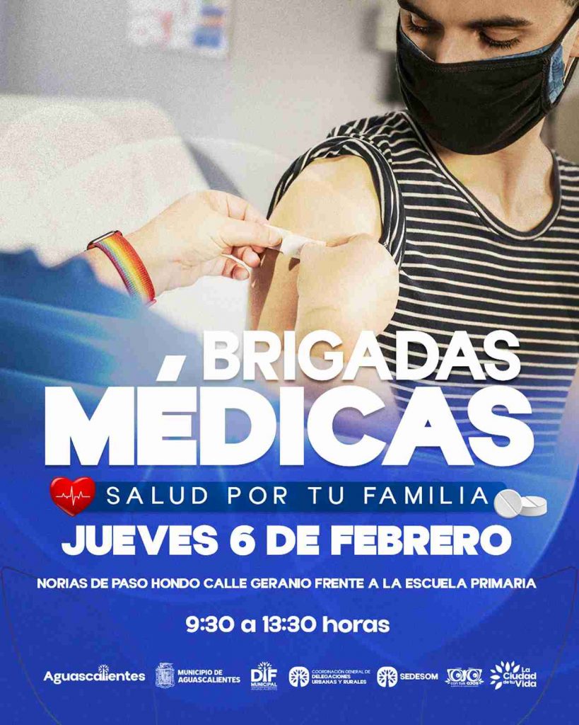 El DIF Municipal de Aguascalientes, en colaboración con la Coordinación General de Delegaciones Urbanas y Rurales y la Secretaría de Desarrollo Social (Sedesom), invita a la ciudadanía a la brigada médica gratuita que se llevará a cabo este jueves 6 de febrero en la comunidad Norias de Paso Hondo.