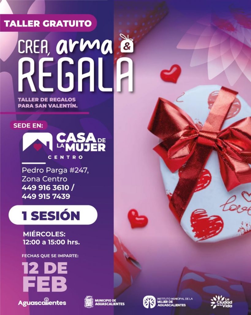 El Instituto Municipal de la Mujer de Aguascalientes (IMMA) invita a la ciudadanía a participar en los talleres gratuitos «Crea, Arma y Regala», una iniciativa que busca fomentar la creatividad y la convivencia en un ambiente seguro. Estos talleres de manualidades permitirán a los asistentes elaborar regalos especiales para San Valentín o Día del Amor y la Amistad.