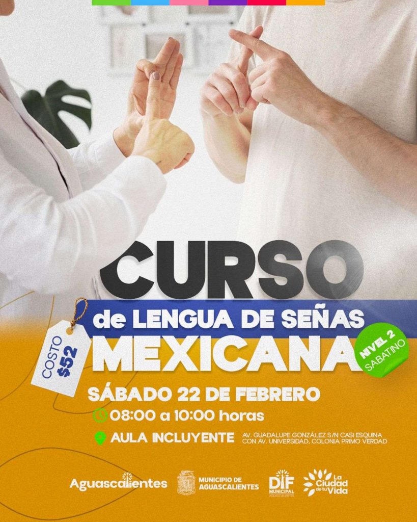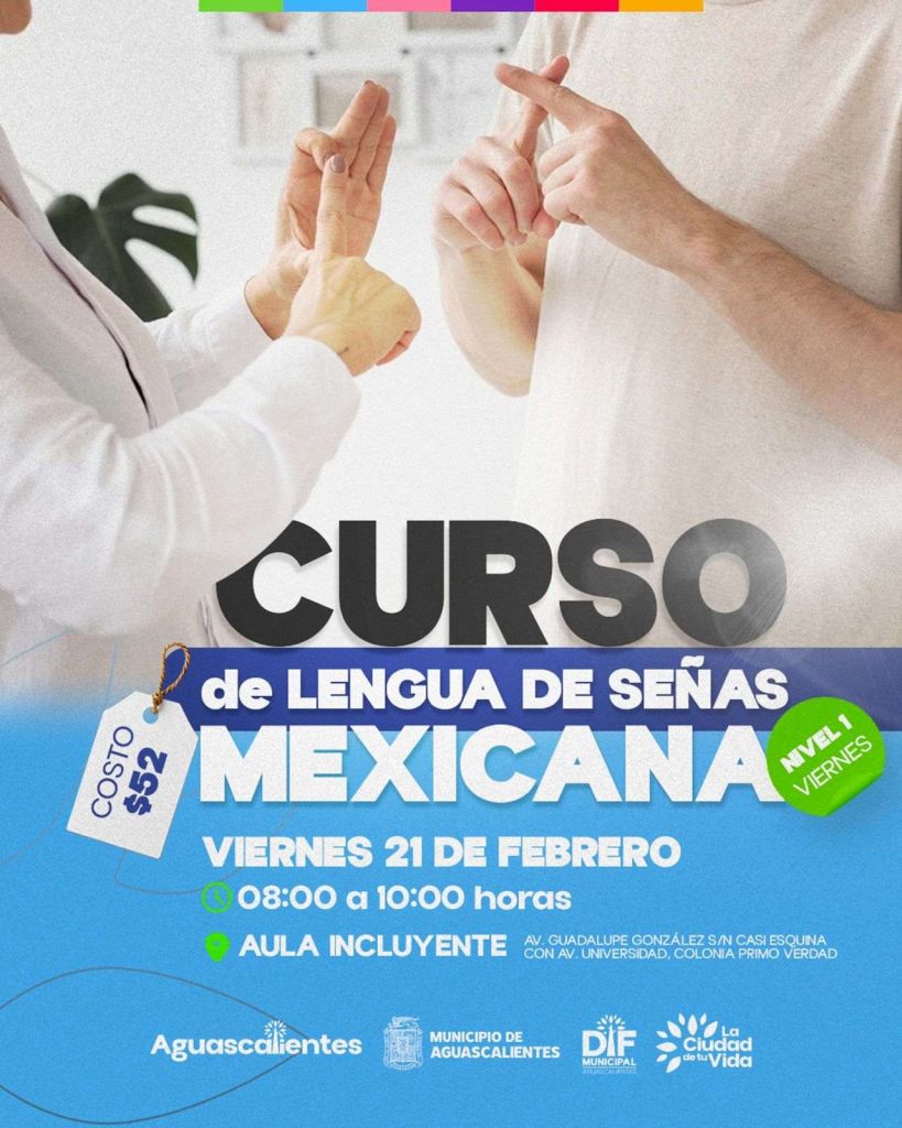 El DIF Municipal de Aguascalientes, a través del Departamento de Trabajo Social y el Área de Atención a Personas con Discapacidad, invita a la ciudadanía a inscribirse en los nuevos cursos de Lengua de Señas Mexicana (LSM) Nivel 1 y Nivel 2, con el objetivo de fomentar la inclusión de las personas con discapacidad auditiva.