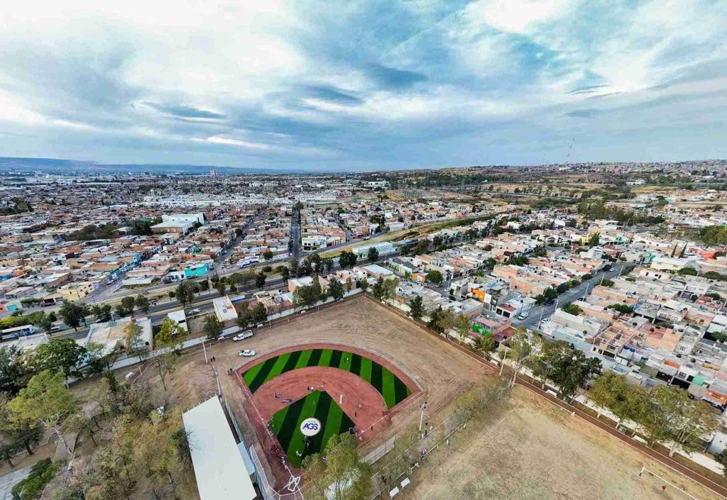 Miguel Ángel Huizar secretario de Obras Públicas Municipales indicó que para dignificar este espacio, se instalaron ochocientos metros cuadrados de pasto sintético, tezontle, dugouts, de colocaron bancas metálicas, malla ciclónica, postes, reflectores y luminarias led.