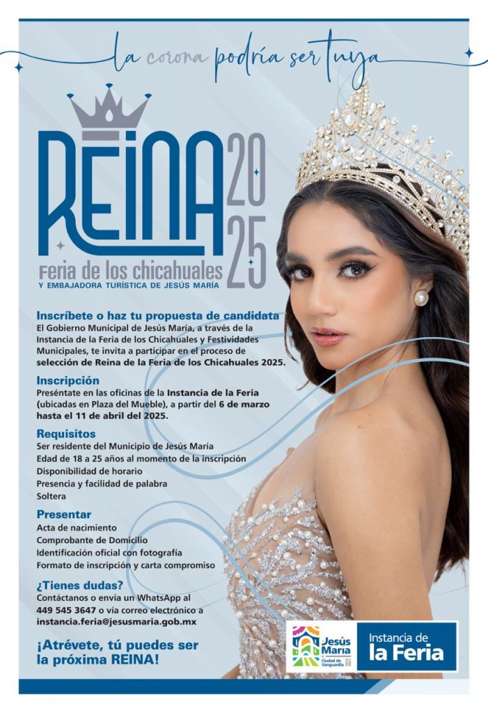 El Municipio de Jesús María lanza oficialmente la convocatoria para seleccionar a la próxima Reina y Princesas de la Feria de los Chicahuales 2025, una de las celebraciones más emblemáticas del municipio.