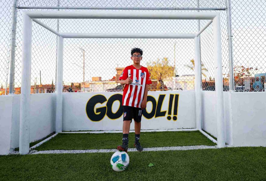El presidente municipal, Leo Montañez, inauguró este martes una nueva cancha de futbolito con pasto sintético en el Parque Fundadores, ubicado en la calle José María de Jesús Portugal, en el fraccionamiento Lomas de San Jorge.