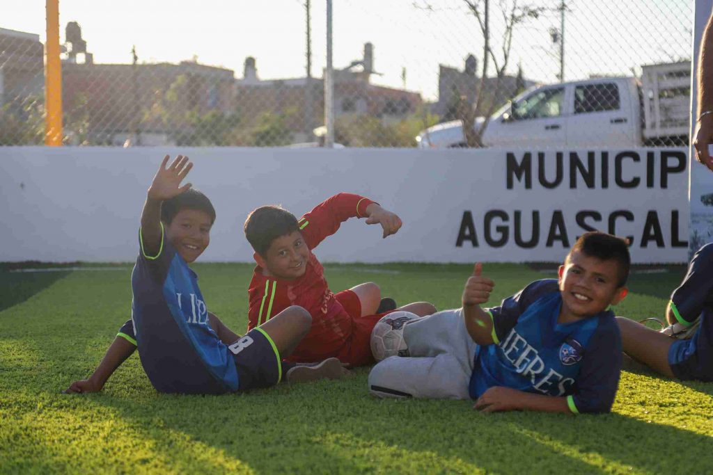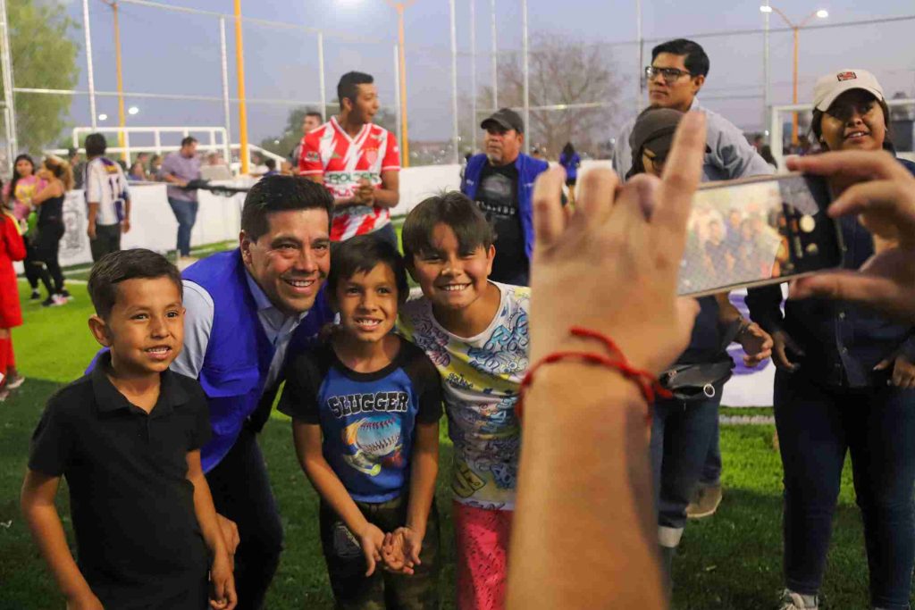 El presidente municipal, Leo Montañez en presencia del equipo de fútbol Liebres, realizó la entrega de una nueva cancha de pasto sintético, para fomentar la actividad física y el bienestar emocional en niñas, niños y jóvenes de Villas de Nuestra Señora de la Asunción sector Estación.