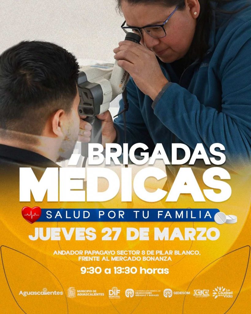 El DIF Municipal de Aguascalientes, en coordinación con la Secretaría de Desarrollo Social Municipal (Sedesom) y la Coordinación General de Delegaciones Urbanas y Rurales, continúa acercando servicios de salud a la ciudadanía con dos brigadas médicas gratuitas programadas para la próxima semana.