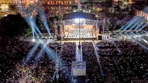 En la Exedra se presentaron por primera vez juntas en un gran ensamble sinfónico, la Orquesta Sinfónica de Aguascalientes y la Banda Sinfónica Municipal de Aguascalientes.