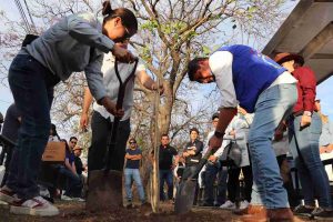 En el marco del Día de la Tierra y como parte de las estrategias de protección ambiental, al término de la Caravana se llevó a cabo la plantación de árboles tronadora y bugambilias en la esquina de calle Nieto y la avenida López Mateos.