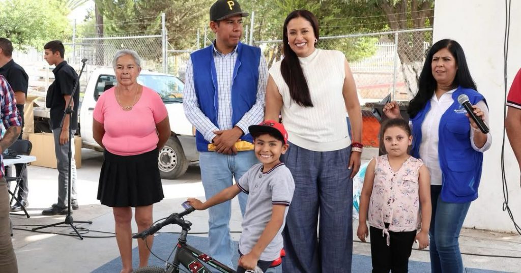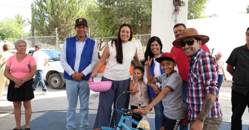 La presidenta municipal de Pabellón de Arteaga, la Mtra. Lucero Espinoza Vázquez, agradeció a nuestra Gobernadora Tere Jiménez y a la Sra. Aurora Jiménez, por su apoyo y por hacer posible este hermoso evento. Fue un honor compartir esta jornada llena de sorpresas, bolos, juguetes y rifas, incluyendo 2 bicicletas para nuestras niñas y niños. 🚲✨