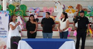 Con gran entusiasmo, Lucero Espinoza, Presidenta Municipal, estuvo presente en el cierre de este taller del Centro de Desarrollo Comunitario en 05 de Mayo, donde las familias participantes demostraron su talento y creatividad al elaborar hermosas piñatas.