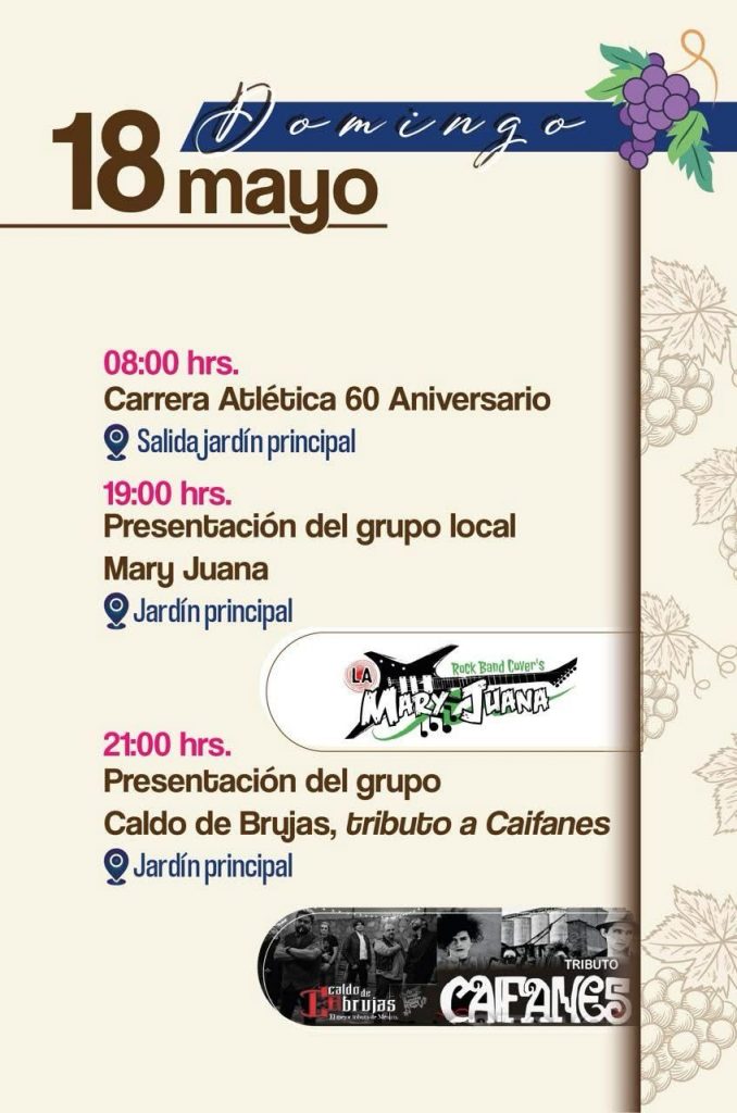 Durante estos días viviremos momentos únicos con actividades culturales, deportivas y artísticas para toda la familia. Desde la Sesión Solemne de Cabildo, la Carrera Atlética 60 Aniversario, hasta las presentaciones musicales de Los Mier, Caldo de Brujas y Mary Juana.