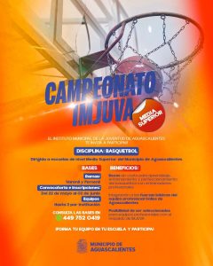 El Municipio de Aguascalientes, a través del Instituto Municipal de la Juventud (Imjuva), invita a las y los jóvenes estudiantes a participar en el Campeonato “IMJUVA Media Superior”, en las disciplinas de básquetbol y fútbol, representando a sus instituciones educativas.