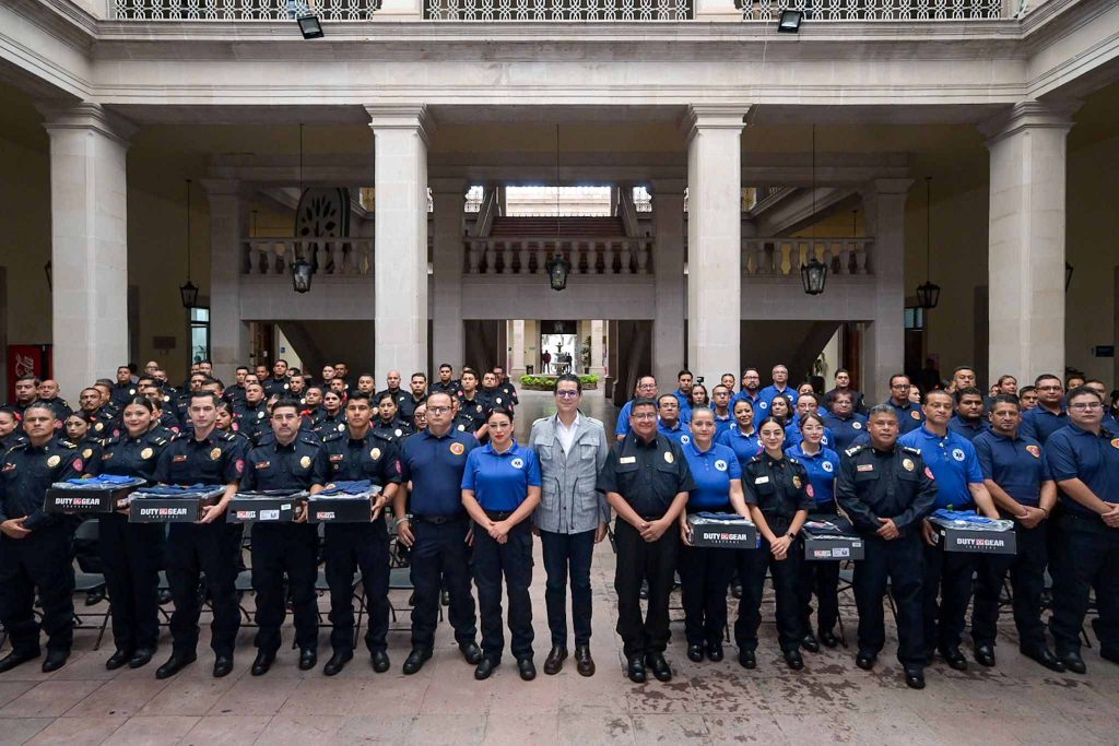 En el evento efectuado en el segundo patio de Palacio Municipal se entregaron pantalones tácticos, camisolas, playeras tipo polo y botas tácticas a los Departamentos de Bomberos, Atención Médica Prehospitalaria, Protección Civil e Inspección y Capacitación, mismos que representan una inversión superior al millón de pesos.