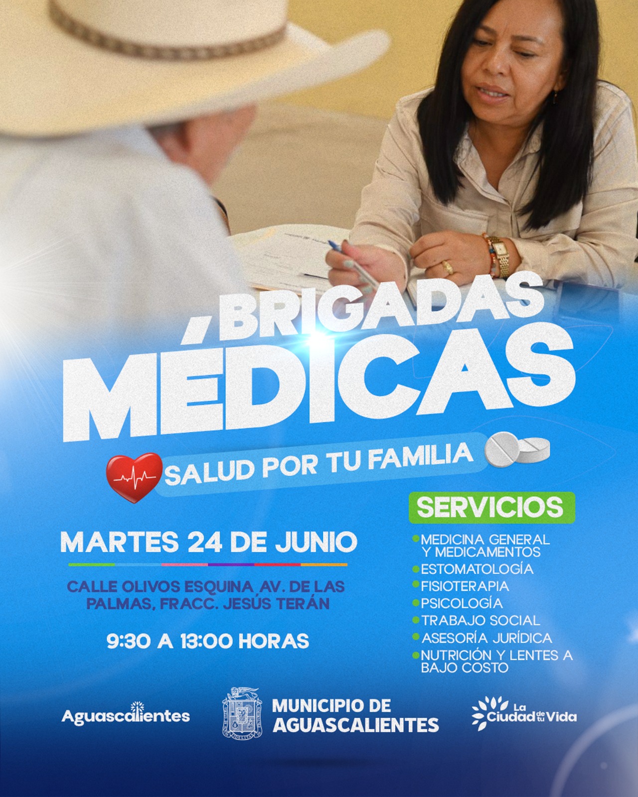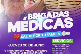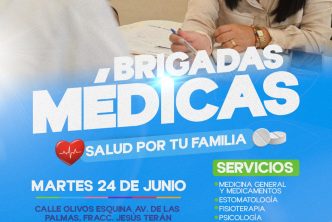 Las brigadas médicas visitarán este martes 24 de junio, la calle Olivos esquina Avenida de las Palmas, en el fraccionamiento Jesús Terán, con un horario de atención de 9:30 de la mañana a una de la tarde.