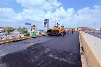 Este sábado 16 de agosto la Secretaría de Obras Públicas efectúa labores de reparación de grietas, se rehabilitan juntas metálicas y se coloca nueva carpeta asfáltica.