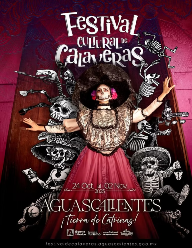 Con este cartel, Aguascalientes invita a México y al mundo a recorrer sus calles, admirar sus altares, bailar con sus catrinas y dejarse envolver por la magia única de este festival.