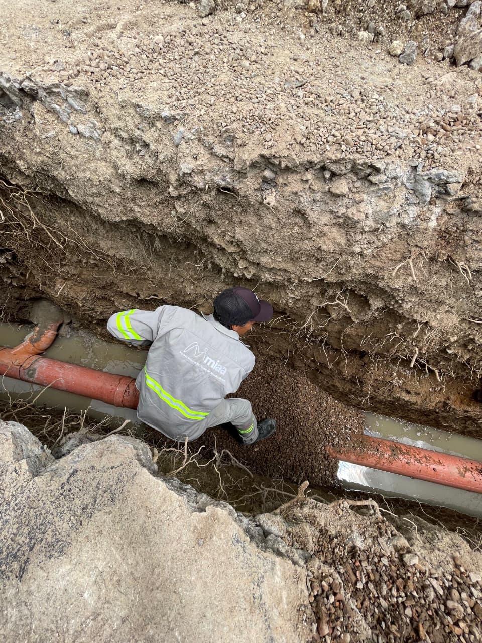 El Modelo Integral de Aguas de Aguascalientes (MIAA), se trabaja en la rehabilitación integral de las redes de alcantarillado sanitario en la calle Paseo de la Cantera casi esquina con la calle Paseo de Yahualica sur, en el fraccionamiento Canteras de San Javier, con lo cual se evitan fugas constantes de aguas residuales y riesgos sanitarios.