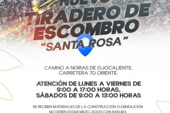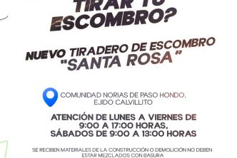El tiradero de escombro “Santa Rosa” se localiza al nororiente de la ciudad, en la comunidad de Norias de Paso Hondo, Ejido Calvillito y ofrece atención de lunes a viernes de 9:00 a 17:00 horas, así como los sábados de 9:00 a 13:00 horas.