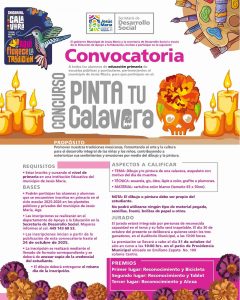 Se trata de los concursos: “Pinta tu calavera”, que va dirigido a estudiantes de educación primaria y busca promover nuestras tradiciones mexicanas, fomentando el arte y la cultura para el desarrollo integral de la niñez, mediante el dibujo y la pintura.