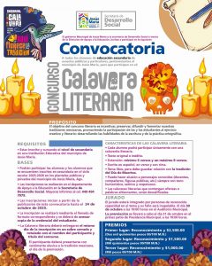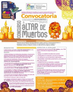 “Calavera literaria”, dirigida a alumnos de secundaria, mediante el cual se pretende desarrollar habilidades de escritura y el ejercicio literario y creativo; así como el concurso de “Altar de muertos”, en el que se invita a jóvenes de preparatoria, a mostrar su ingenio y habilidades artísticas y diseñar y montar un altar de forma original y colorida, para preservar y compartir esta tradición con las nuevas generaciones y rendir homenaje a nuestras raíces y fortalecer el trabajo colaborativo.