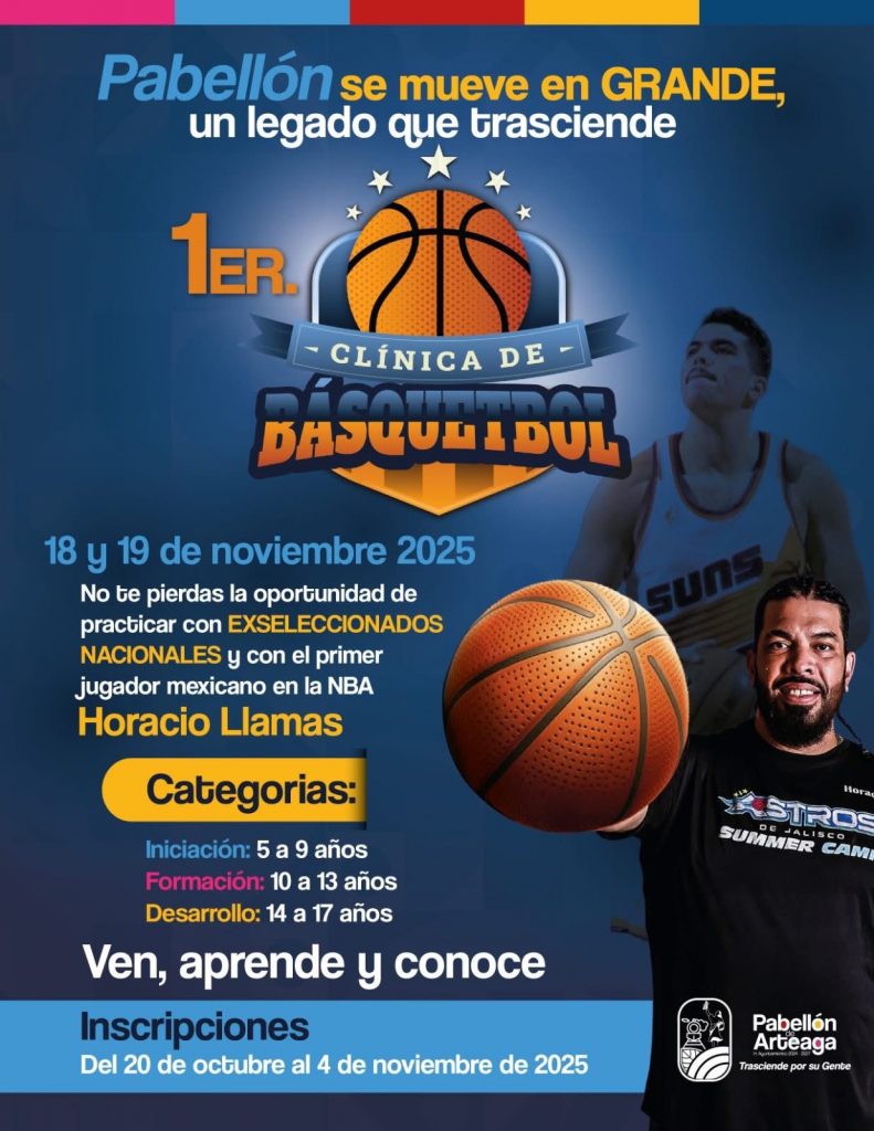 ¡La emoción del básquet llega a nuestro municipio con la 1.ª Clínica de Básquetbol junto a exseleccionados nacionales y el histórico Horacio Llamas, el primer mexicano en jugar en la NBA!