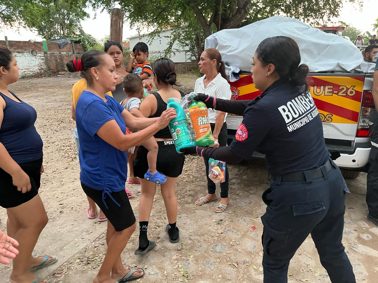 Acompañados por autoridades locales, personal operativo de Protección Civil y de Servicios Públicos de Aguascalientes se trasladó hasta la colonia Mojoneras, para llevar apoyo directo a las familias afectadas.