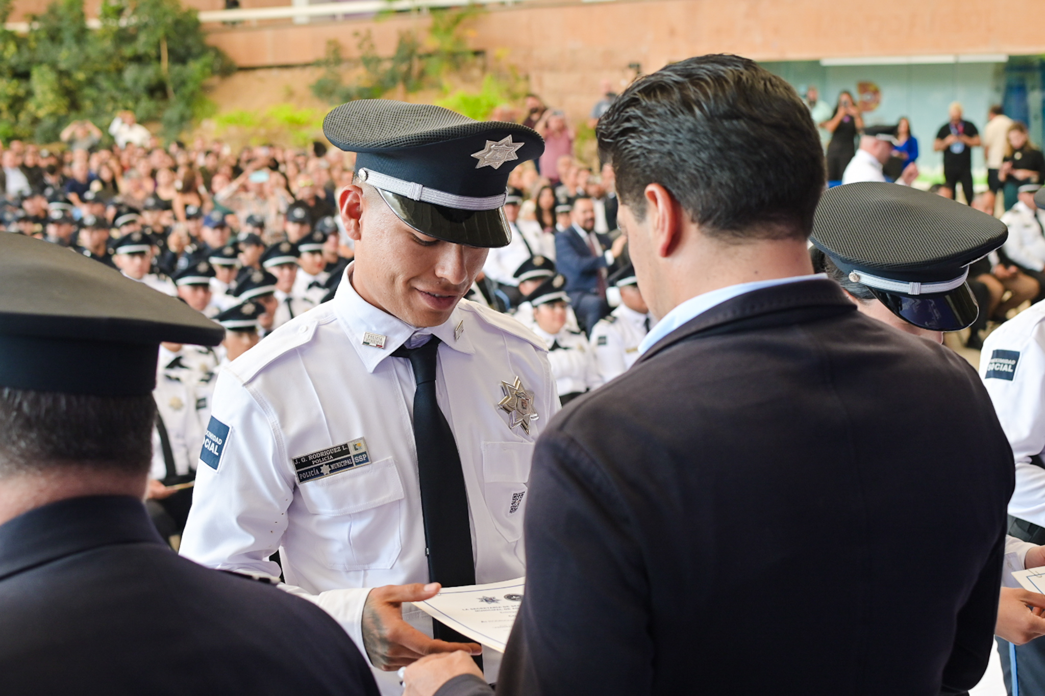 En el marco de su primer informe, el presidente municipal, Leo Montañez, encabezó la ceremonia de graduación de las Generaciones 36, 37 y 38 del Curso de Formación Inicial en Policía de Proximidad del Instituto Superior en Seguridad Pública, en donde 78 nuevos policías se integrarán a la corporación municipal para fortalecer la seguridad de las familias.