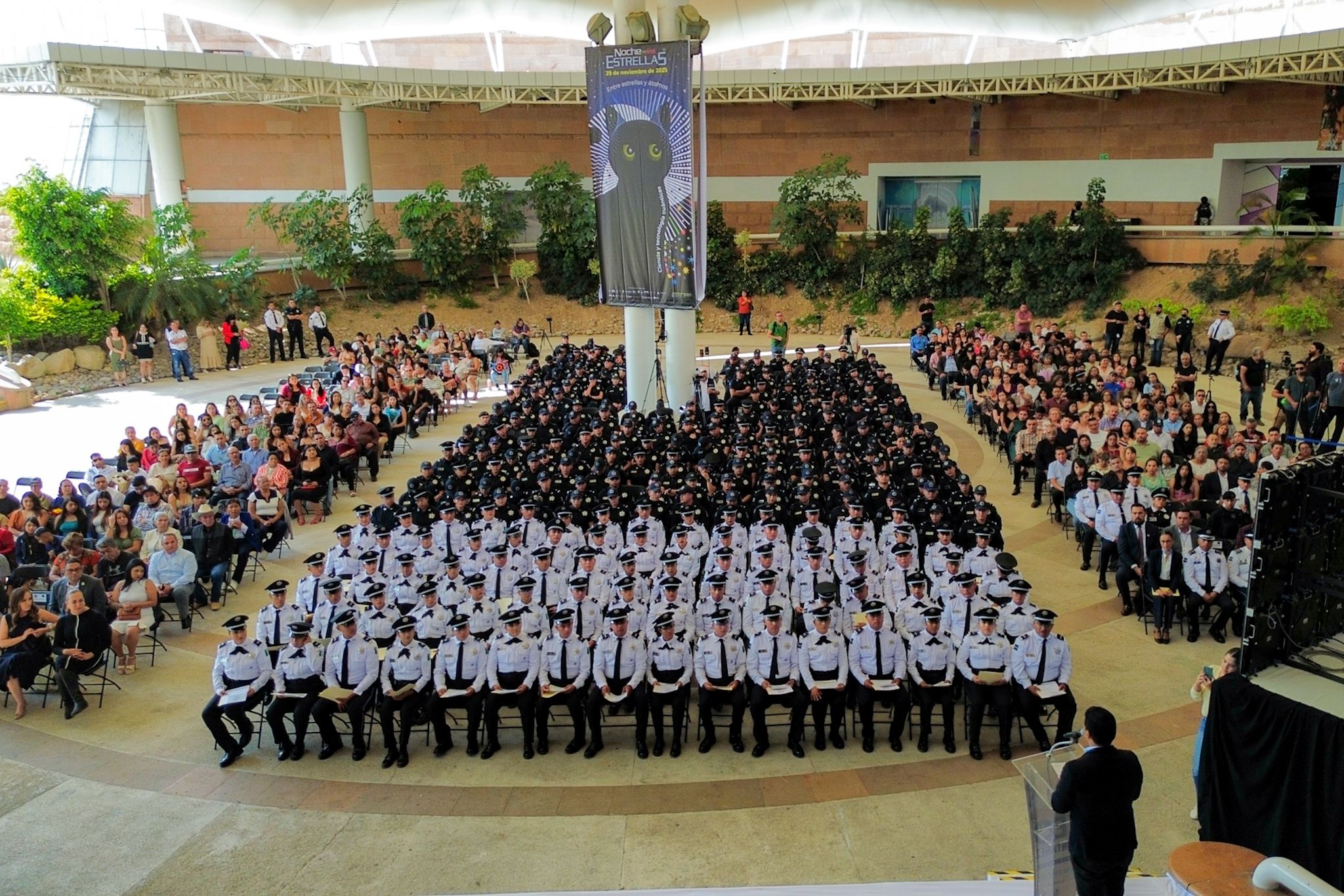 Se contó con la presencia a la ceremonia de graduación efectuada en las instalaciones del Museo Descubre, de integrantes del H. Ayuntamiento de Aguascalientes; Jose Antonio Orta Álvarez, vicesfiscal de Investigación del Delito de la Fiscalía del Estado de Aguascalientes; Coronel de Infantería Rodrigo Medina Miranda, representante de la XIV Zona Militar; Coronel de la Guardia Nacional, Oscar Celis Romero, en representación del coordinador estatal de la Guardia Nacional; el secretario de Seguridad Pública Estatal, Antonio Martínez RomoKarla Isabel Martorell Moya, presidenta de la Mesa Ciudadana de Seguridad; Mauricio de la Serna Hernández, secretario ejecutivo del Sistema Estatal de Seguridad Pública del estado de Aguascalientes; la directora del Instituto Superior en Seguridad Pública, Pamela Soria Armengol e integrantes de las generaciones 25, 26, 27, 28, 29, 30, 31, 32, 33, 34, 35, 212 nuevos integrantes que forman parte de la corporación capitalina, pertenecientes a los diferentes grupos especiales de la Policía Municipal.