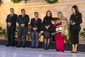 Durante este acto, se realizó la entrega del Premio al Mérito Ciudadano “Fundador Matías Saucedo”, el máximo reconocimiento que otorga el Municipio, dirigido a quienes han destacado por su trayectoria, aportaciones y acciones en favor de la comunidad, así como por la preservación de las tradiciones y la identidad propia de Jesús María. Este año, se entregaron ocho preseas: