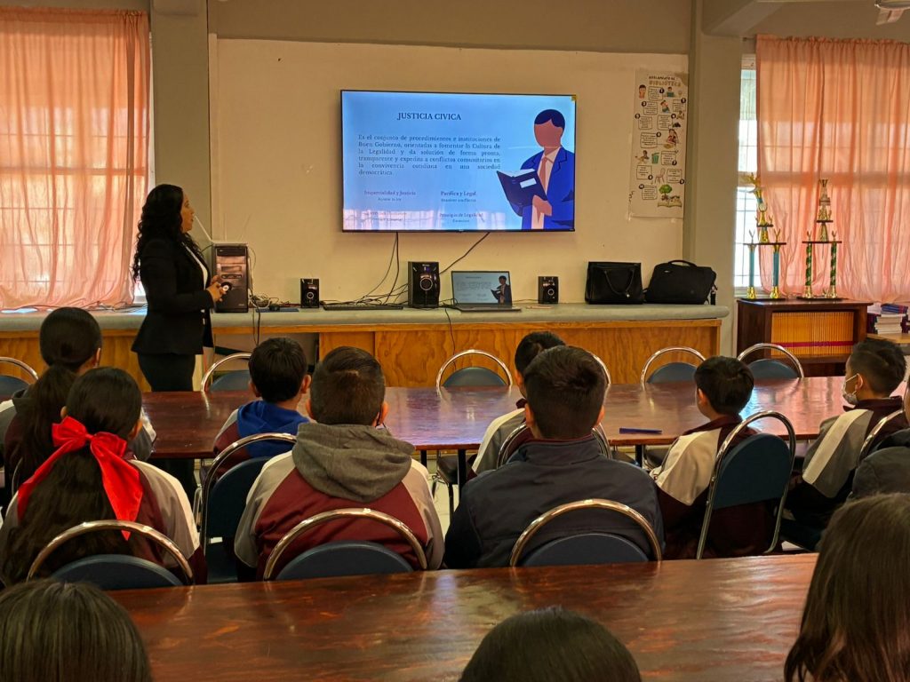 Con el objetivo de fortalecer la convivencia armónica y fomentar una cultura de respeto a la legalidad desde temprana edad, personal del área de Justicia Cívica del municipio de Jesús María imparte pláticas de Cultura de la Legalidad y Conciliación Cívica Escolar a alumnas y alumnos de la Secundaria Técnica No. 10 y otros planteles educativos.
