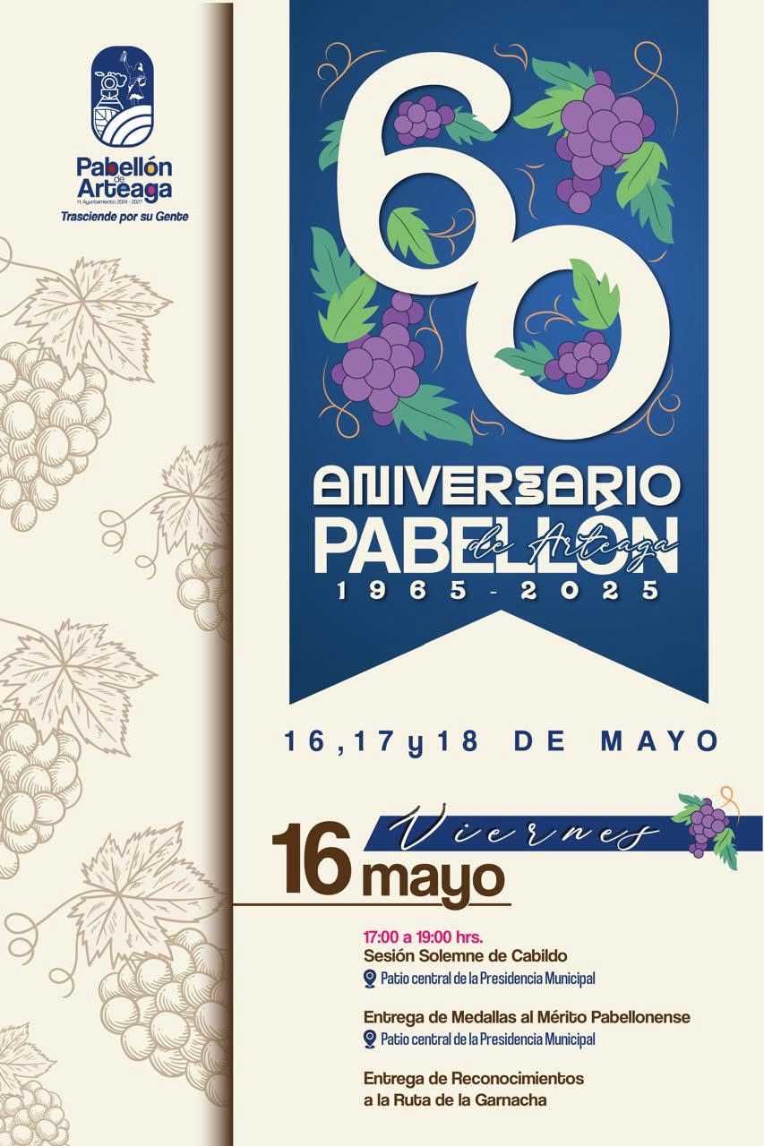 Nos enorgullece compartir contigo el programa oficial del Aniversario de Pabellón de Arteaga, un evento que celebra nuestra historia, cultura y el espíritu que nos une como comunidad. 🗓️ 16,…