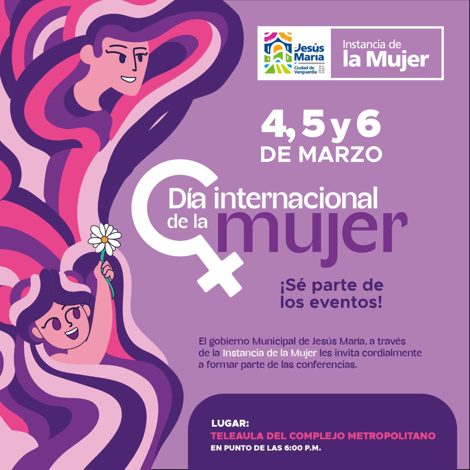En el marco del Día Internacional de la Mujer, el Gobierno Municipal de Jesús María, a través de la Instancia de la Mujer, llevará a cabo una jornada de conferencias…