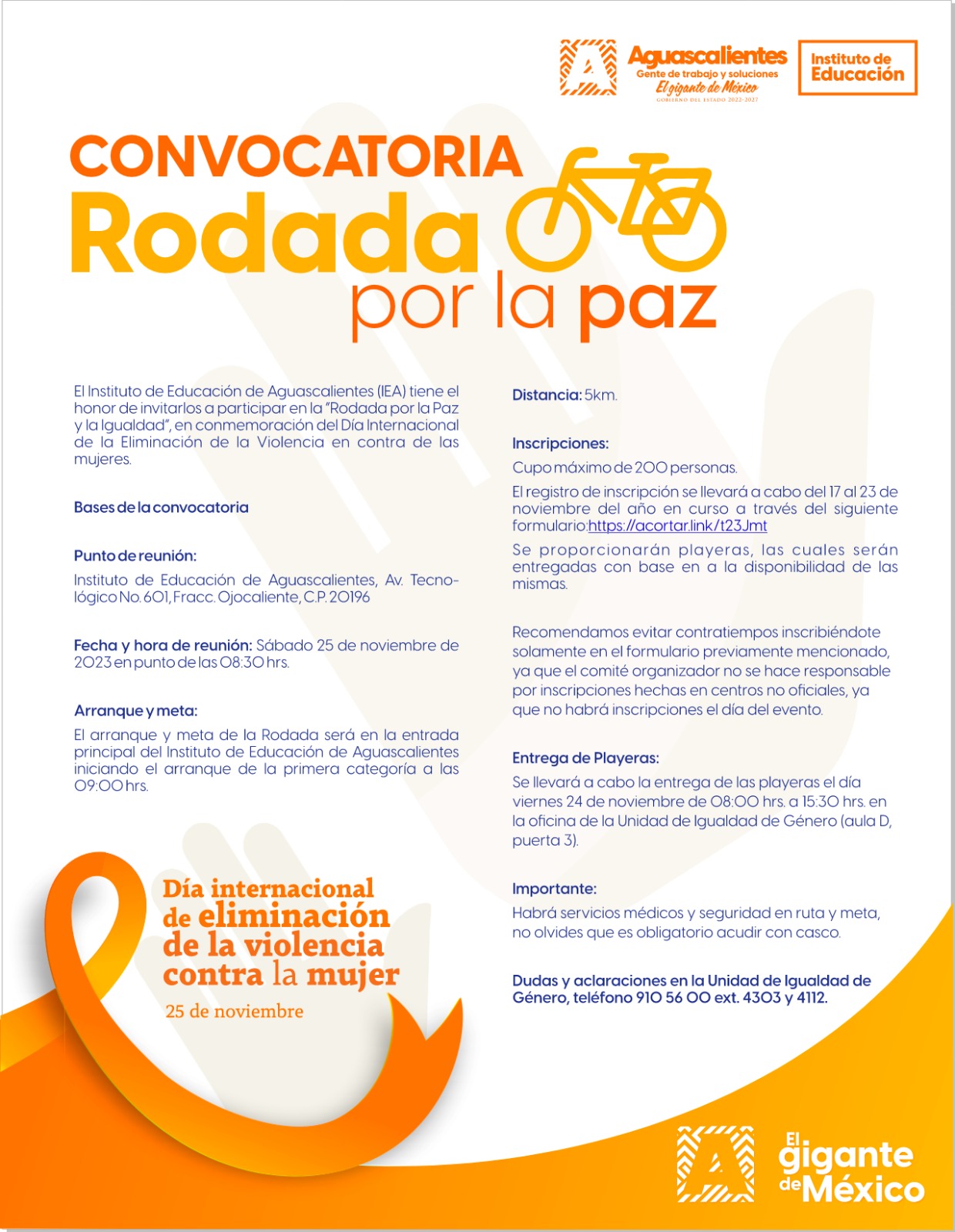 El Instituto de Educación de Aguascalientes (IEA) extiende la invitación a toda la comunidad educativa de Aguascalientes a participar en la “Rodada por la Paz y la Igualdad” para conmemorar…